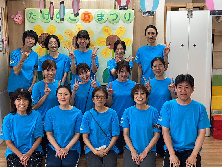 たけのこ保育園の保育士は、20代から70代まで幅広い層が活躍しています。保育の指針が移り変わる中、